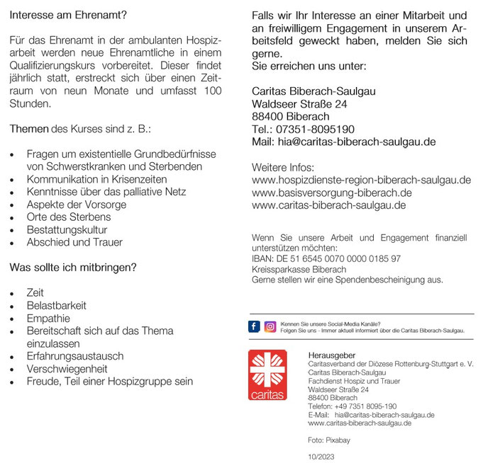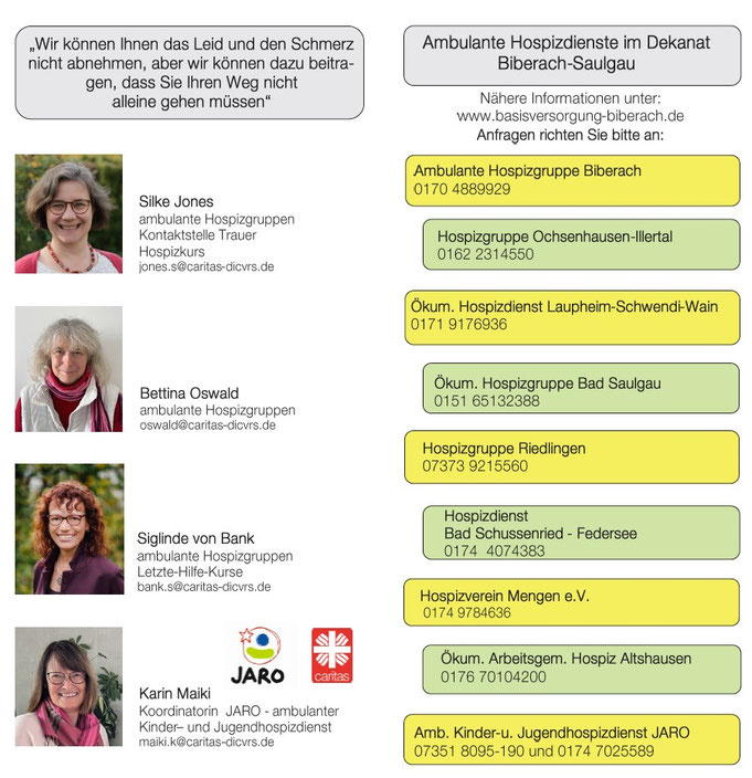 Die ambulanten Hospizdienste sind mit weiteren Akteuren, wie den stationären Hospizen, dem Palliativteam Biberach (SAPV), Sozialstationen und Pflegeheimen vernetzt.