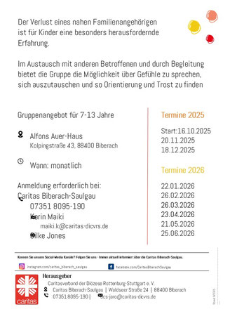 Seit Oktober 2025 gibt es eine Trauergruppe für trauernde Kinder.