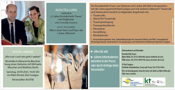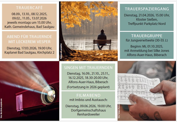 Weitere Angebote der Kontaktstelle Trauer von Caritas und Dekanate Biberach-Saulgau finden Sie unter: dekanat-biberach.drs.de