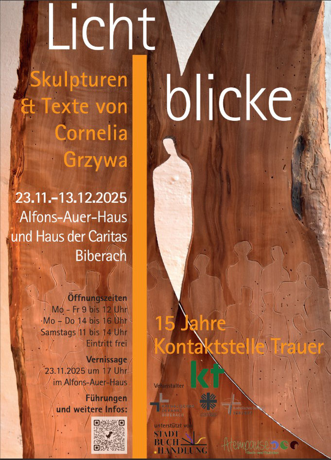 Aus Anlass des Jubiläums wird es eine Ausstellung geben. Unter dem Namen „Lichtblicke" zeigt die Künstlerin Cornelia Grzywa vom 23. November bis 13. Dezember 2025 im Alfons-Auer-Haus und dem Haus der Caritas ihre Kunstwerke. Die Holzskulpturen und Texte der Ausstellung „Lichtblicke“ laden nicht nur Trauernde zum Verweilen, schauen und Atem holen ein. In Zeiten der Dunkelheit, Trauer und Ohnmacht möchte die Ausstellung von Licht- und Hoffnungsblicken erzählen. Gerade in der Jahreszeit, wenn die Tage kürzer werden und der Advent beginnt sehnen wir Menschen uns nach Lichtblicken in dieser Welt.“